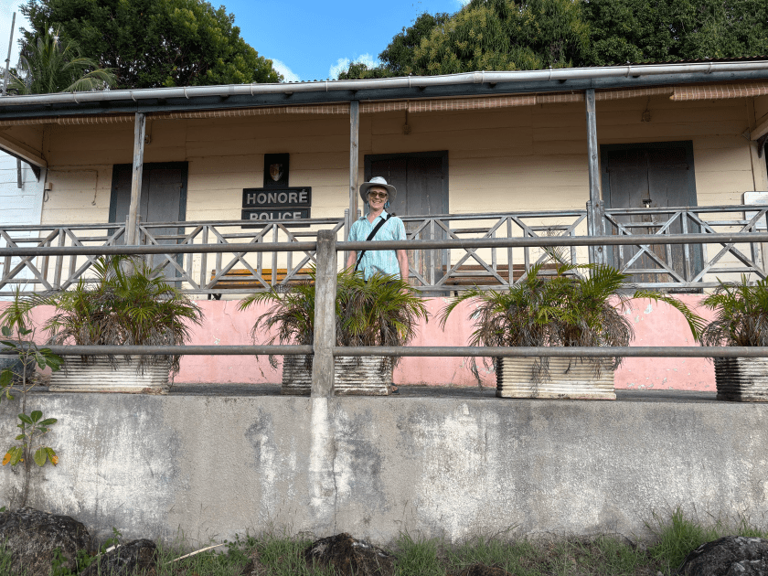 The following day, Wednesday, we needed to get our clearance papers stamped at customs in Deshaies. Although we could have dinghied from Grand Anse, we wanted the ease of dropping mooring lines rather than hauling anchor when we got underway at 6:00am the next morning, plus we wanted to see Pulpo again. So we texted them to ask if there were any mooring balls open, to which they responded yes. As soon as we finished breakfast, we hauled anchor and ended up grabbing a recently vacated mooring right next to Pulpo. Yay! We each did our own thing that day. They went for a monster bike ride around the area. Dave and I stopped at Customs for that clearance stamp, grabbed croissants at the local bakery, then walked back toward Grand Anse via the main road through town and then along a shaded road/path. We walked a bit into the forest to an old battlement, now sporting one lonely old cannon, then we exited the trees onto the far south end of Grand Anse and walked over the sand back to the main swimming area, then out to the main road and back into town. Pulpo invited us over for dinner and we spent another lovely evening eating and chatting. They would also be heading to Antigua the next day, but didnât need to leave as early as us, since they can sail faster than we can motor.