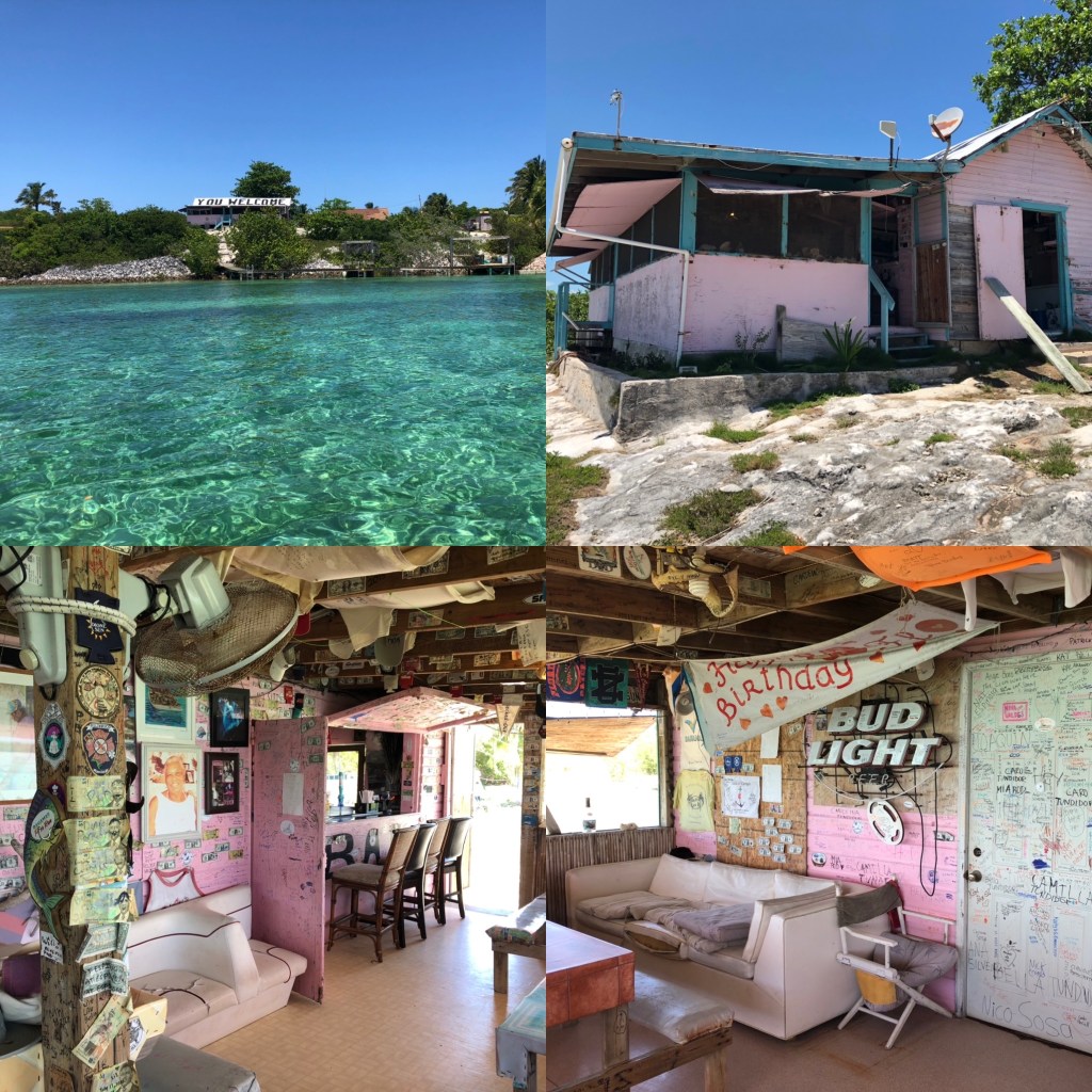 After Glass Window we started our walk back to dingy but decided to go a little past it to see if we could find the restaurant/bar rumored to be nearby. Half a mile later we were sitting at Daddy Joe’s enjoying conch fritters and mac ‘n cheese sticks, along with a drink called a Kerpunkle, which we learned is Bahamian slang for shit-faced. Aptly named, because the drink was strong with rum. Yum! Our ‘snack’ was large and late in the afternoon, so dinner on board was cheese and crackers and fruit.
