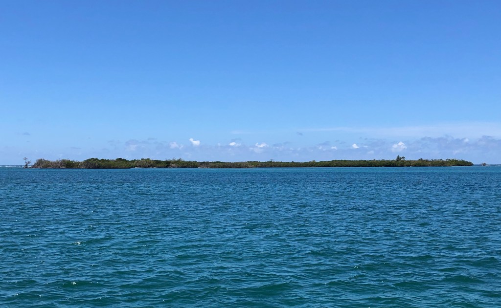 I’m writing in the past tense because that was all destroyed during an earthquake in January of 2020, and it hasn’t been repaired or replaced yet. The quake also caused some sinking of the land and the mangroves have filled in. The park is officially closed, so visiting is at one’s own risk and with one’s own means of transportation; the ferries don’t go there anymore. We dinghied over and landed on a couple of very tiny sandy spots to walk what remains of trails we could find. We dinghied partway through one of the mangrove creeks and saw lots of fish. Dave and I snorkeled part of the reef on the south side of the island. The first dive mooring we picked up was in a field of sea grass overgrowing tumbled, dead coral, but we had more luck on the other ball closer to the breaking part of the reef. The hard coral was mostly dead, but its structure remained. It must have been amazing when it was alive. There was new coral growth, which is encouraging. We saw a small, healthy elkhorn coral and some fire coral, as well as some other hard corals for which I don’t know the names. We saw the usual suspects of small fish. It wasn’t a great snorkel, but it is a pretty little island.