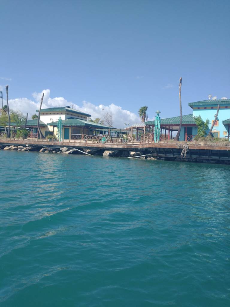 The next day was Tuesday, April 18th and we moved with our buddy boats the short distance east to Ponce. The preferred anchorage is near the Yacht Club. It’s a small area and not very pretty, not to mention crowded with the mooring balls and anchored boats. It’s the first time we put out our typical 5:1 scope to set the anchor, but then drew it in to a 3:1 scope. (Scope is the ratio of water depth to length of anchor line/chain put out. If the water is 10’ deep, we would put out 50’ of anchor chain for a 5:1 scope, 30’ for 3:1.) Sometime in the late 1990s, the La Guancha Boardwalk here was opened to the public. It was a hot spot on the weekends, especially at night. The waterfront was lined with shops, restaurants and bars. Again, past tense. It was heavily damaged by Hurricane Maria in 2017, and before any repairs were started it was damaged further by the January 2020 earthquake. There is a fishing cooperative at one corner of the anchorage that allows dinghies to tie up (the Yacht Club does not). So we went ashore and wandered a bit. About ¼ mile from the original boardwalk we encountered a park with food trucks lined up along the way. It’s a makeshift replacement for the boardwalk, but being a Sunday, the trucks were closed, except for a couple that sold drinks and hot dogs. We wanted a more substantial lunch and there was nothing within walking distance. One of our group had seen another dinghy dock at another fishing cooperative about a mile up into the bay. So we dinghied up and asked the fishermen and the DRNA officials (there was an office there) if we could leave our dinghies for a couple of hours while we got lunch. They put us all into an empty slip and recommended a restaurant about ½ mile down the road. It was a yummy lunch!